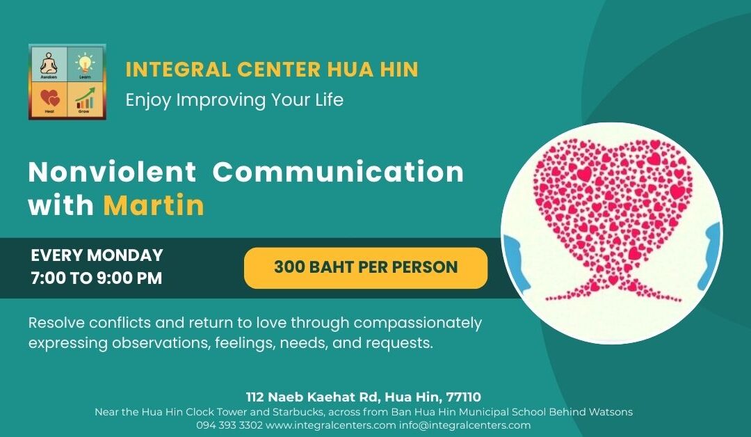 Join us every Monday from 7:00-9:00 pm for a Special Class about Non-Violent Communication.